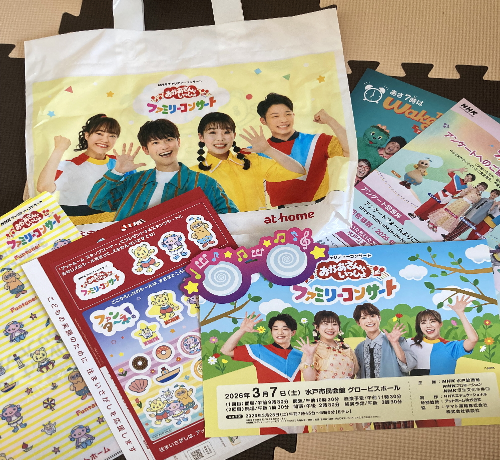 我が家も今回、4歳と3歳の子どもを連れて、2026年3月7日に水戸市民会館で開催されたおかあさんといっしょファミリーコンサートに参加しました。座席は一番後ろのC席。さらにグッズ購入やフォトブースなど、開演前にやりたいことも多く「時間は足りるのかな?」と当日まで少し心配していました。